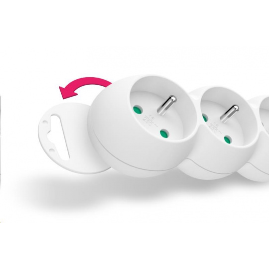 Predlžovací kábel 230 V je vybavený hlavným sieťovým vypínačom, ktorý po vypnutí súčasne úplne odpojí všetky pripojené spotrebiče od napájania. Ďalšou funkciou je ochrana všetkých zásuviek pred deťmi - zásuvky sú prístupné len vtedy, keď sú obe vidlice vložené súčasne, takže ich nemožno vložiť jednotlivo, napr. iba skrutkovač alebo pletacie ihlice. Vďaka otočeniu zásuviek o 45° je možné používať aj objemnejšie napájacie adaptéry alebo uhlové zástrčky. Výsuvná slučka v hornej časti zásuvkového modulu umožňuje zavesenie alebo pevnú inštaláciu na stenu (napr. v dielňach a garážach). Výrobok bol testovaný a certifikovaný európskym skúšobným centrom, spĺňa najprísnejšie bezpečnostné požiadavky a najnovšie normy a umožňuje pripojenie spotrebičov s celkovou spotrebou energie až do 2500 W.