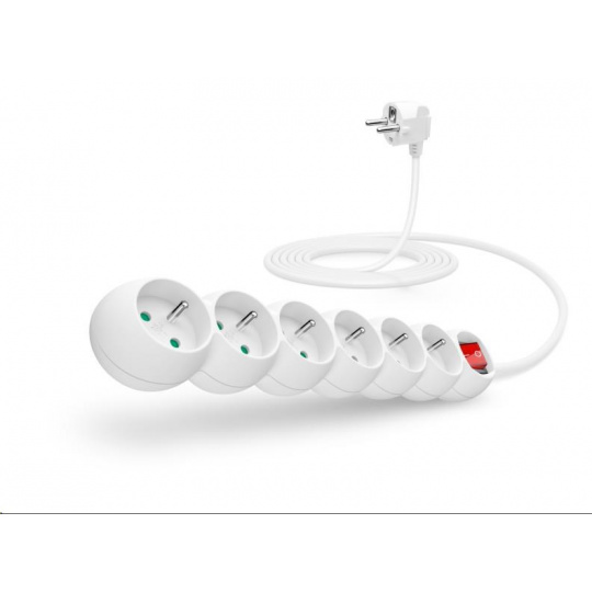 Predlžovací kábel CONNECT IT 230 V, 6 zásuviek, 3 m, s vypínačom (biely)