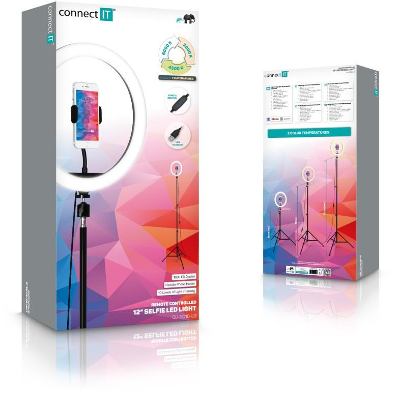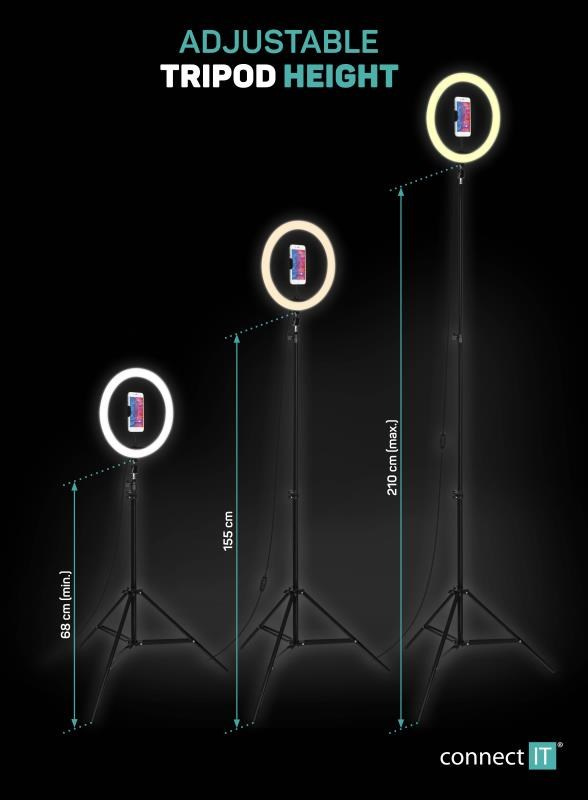CONNECT IT Selfie12Ring kruhové 12" LED svetlo + statív 2,1 m