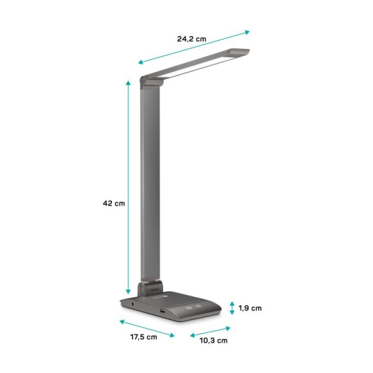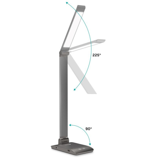 Vďaka sklopnému ramenu a krku nastavíte dokonalý uhol pre akúkoľvek prácu. Lampička disponuje USB-A výstupom s výkonom 5 W a dvoma praktickými dotykovými spínačmi, ktoré umožňujú zapnúť/vypnúť lampu, nastaviť 3 úrovne jasu svetla alebo nastaviť farebnú teplotu svetla v 3 rôznych úrovniach (3000/4000/6500 K).