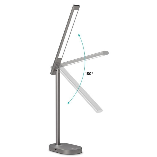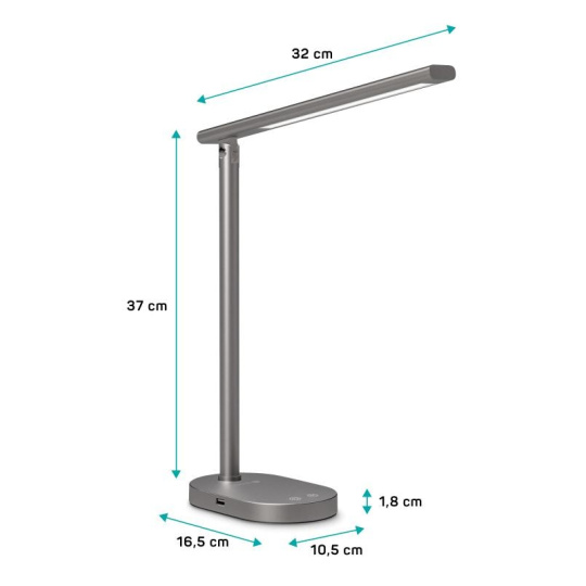 Vďaka sklopnému ramenu nastavíte dokonalý uhol pre akúkoľvek prácu. Lampička disponuje USB-A výstupom s výkonom 5 W a dvomi praktickými dotykovými spínačmi, ktoré umožňujú zapnúť/vypnúť lampu, nastaviť 3 úrovne jasu svetla alebo nastaviť farebnú teplotu svetla v 3 rôznych úrovniach (3000/4000/6500 K).