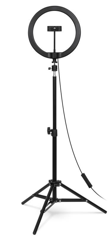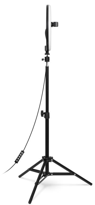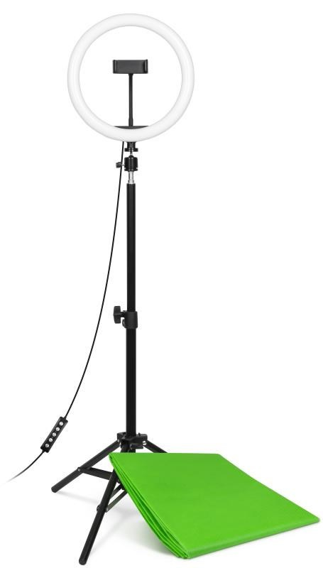 | Obsah balenia | Kruhové LED svetlo Prívodný kábel s diaľkovým ovládaním Flexibilný držiak mobilného telefónu Stojan s guľovou hlavou Green screen Návod na obsluhu |