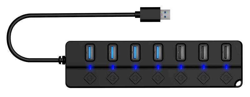 Praktický USB hub so 7 USB (4xUSB-A 3.0, 3xUSB-A 2.0) portmi s ON/OFF spínačom.
