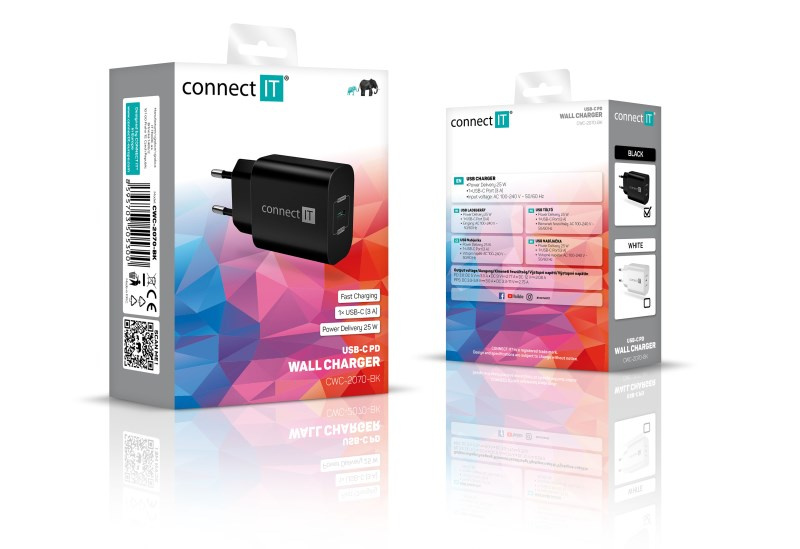 Cestovná USB nabíjačka CONNECT IT "Voyager2" určená na napájanie aj nabíjanie mobilných telefónov, tabletov, power bankov, akčných kamier, elektronických čítačiek kníh, MP3 a MP4 prehrávačov, herných konzol a mnohých ďalších prenosných zariadení doma, v kancelárii aj na cestách. Technológia Power Delivery (PD) umožňuje rýchlonabíjanie s výkonom 25 W.