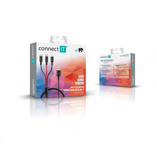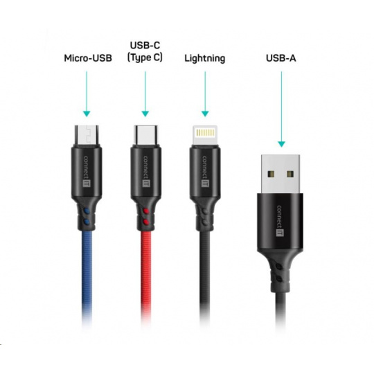CONNECT IT Wirez 3v1 USB-C & Micro USB & Lightning, 1,2 m