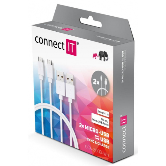 CONNECT IT Wirez Micro USB - USB, biely, 1 m (2 ks v balení)