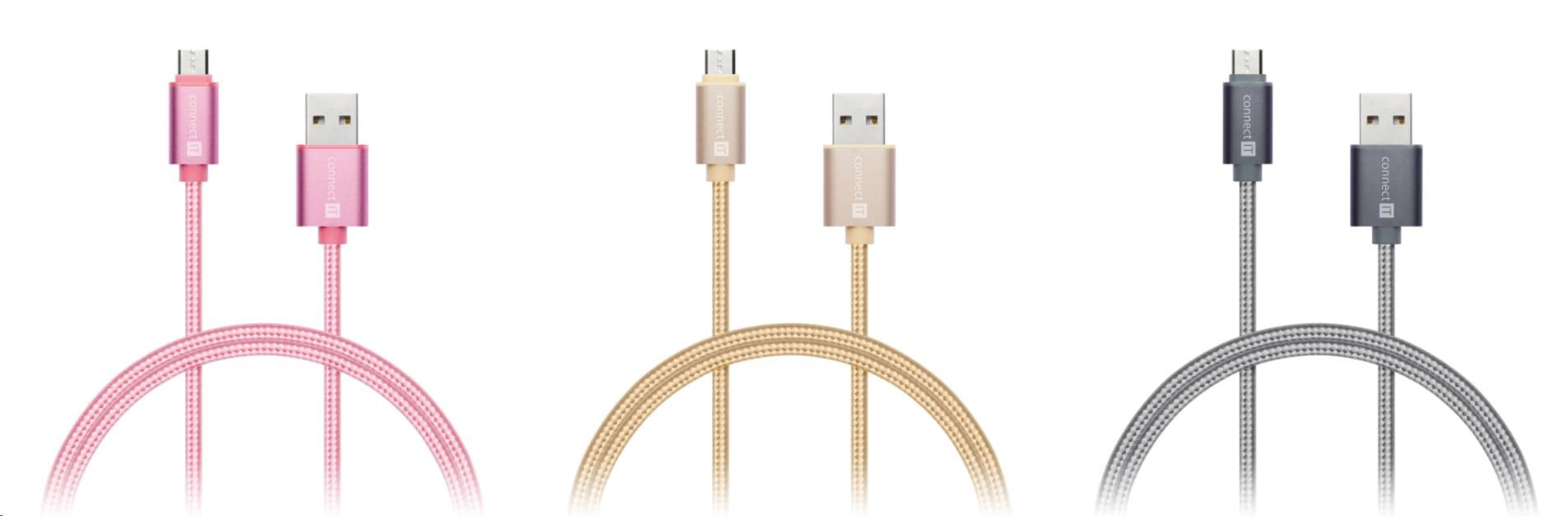 CONNECT IT Wirez Premium Metallic micro USB - USB, ružové zlato, 1 m