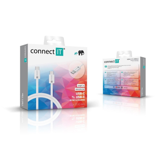 CONNECT IT Wirez USB-C -> USB-C, 60 W, 1m, bílá