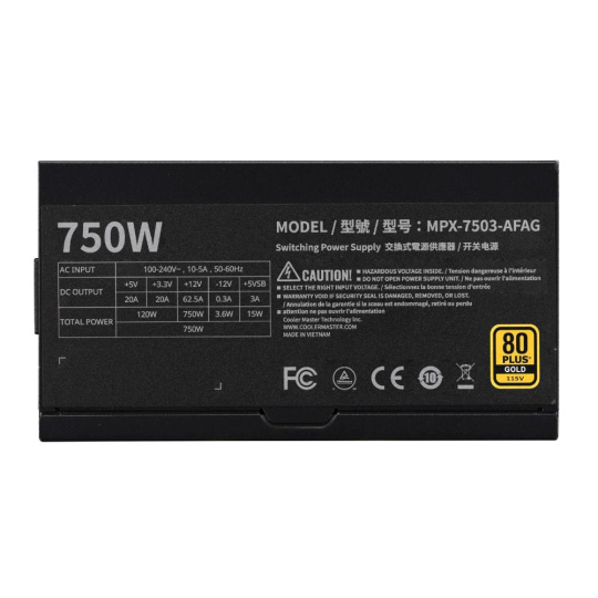 Cooler Master zdroj 750W MWE Gold 3, 120mm, 80+ Gold, Plně modulární, ATX 3.1