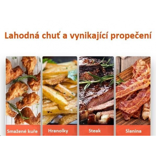 Maximálna teplota 230 ° C zrýchľuje varenie a zaručí dokonalú chrumkavosť a textúru jedla