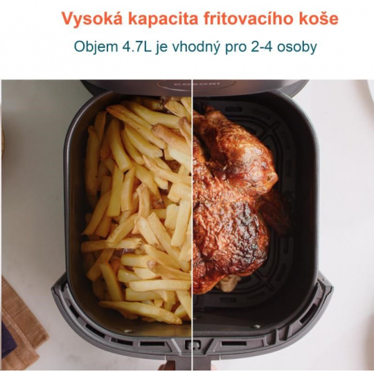 - Objem fritovacieho koša 4,7l pri zachovaní kompaktných rozmerov