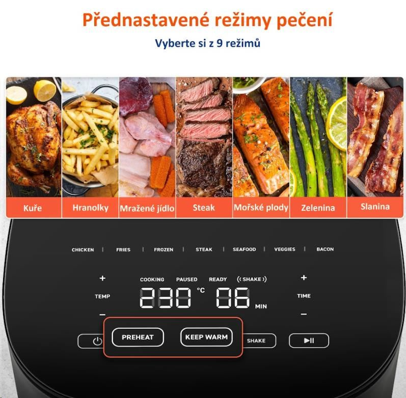 Samozrejmosťou je tiež možnosť manuálneho nastavenia teploty v rozmedzí 75-230°C a doby prípravy jedla (až 60 minút).