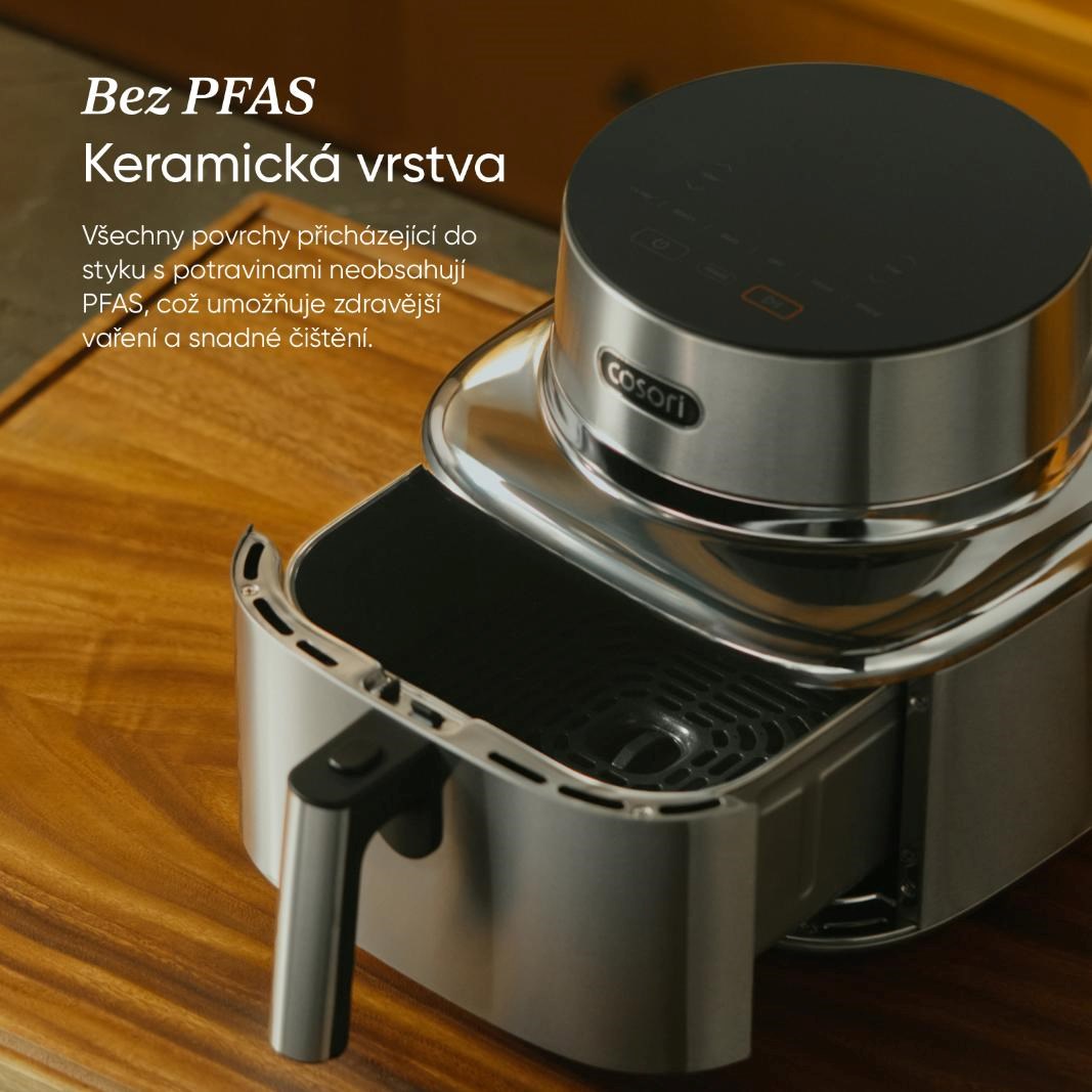 COSORI Iconic bol navrhnutý tak, aby bol prirodzenou súčasťou moderného interiéru, nie len obyčajným spotrebičom. Nerezová oceľ a tvrdené sklo vytvárajú čistý, pokojný vzhľad, ktorý krásne zapadá do minimalistických kuchýň. Je to predmet, ktorý poteší oko zakaždým, keď okolo neho prejdete.
