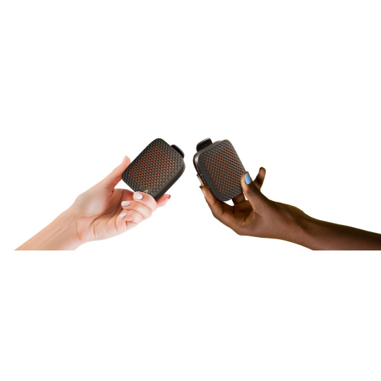 Tento kompaktný reproduktor (84 g) je navrhnutý pre dobrodružstvo v prírode a ľahko ho môžete pripnúť, zavesiť pomocou šnúrky alebo upevniť pomocou magnetu.