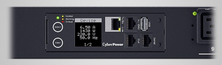 CyberPower PDU81405 je sieťová jednotka distribúcie napájania ideálna pre dátové centrá a podnikové aplikácie, ktorá poskytuje miestne/vzdialené monitorovanie v reálnom čase a ovládanie zapínania/vypínania jednotlivých zásuviek pre vzdialené reštarty, plánované zapnutie/vypnutie a ďalšie. Funkcia Daisy Chain tiež umožňuje monitorovať a ovládať niekoľko PDU pripojených dohromady pod jednou IP adresou.