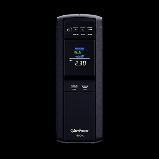 CyberPower CP1600EPFCLCD s výstupom vo forme čisté sinusoidy chráni stredné až špičkové počítačové systémy, servery a sieťový hardware, ktoré používajú konvenčné zdroje napájania a zdroje s aktívnou korekciou účiníka (PFC). Táto UPS navrhnutá s technológiou GreenPower UPS™ na zlepšenie prevádzkovej účinnosti a minimalizáciu spotreby energie prináša významné úspory nákladov na energiu oproti konvenčným systémom UPS. UPS poskytuje automatickú reguláciu napätia (AVR) na udržanie stabilného napätia pre pripojené zariadenia. Produkt je vybavený ochranou dátovej linky s vysokorýchlostným prenosom pre ochranu komunikačného zariadenia pred prepätiami/špičkami a rýchlosťou dátového prenosu 1 Gbps. SO naklápacím farebným LCD panelom môžu používatelia na prvý pohľad sledovať kľúčové informácie o napájaní a batérii. Software na správu napájania PowerPanel umožňuje používateľovi vykonávať monitorovanie a konfiguráciu v reálnom čase.