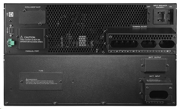 | Dodávka zahŕňa | UPS + batériový modul; kryt I/O bloku Terninal; používateľská príručka; telefónny kábel; CD so softvérom PowerPanel®Business Edition; USB kábel typu A+B; lišty na montáž do stojana; konzola na montáž do stojana (2+2); spojovacia doska (2); ližiny (2+2); sériový kábel; napájací kábel; montážna súprava |