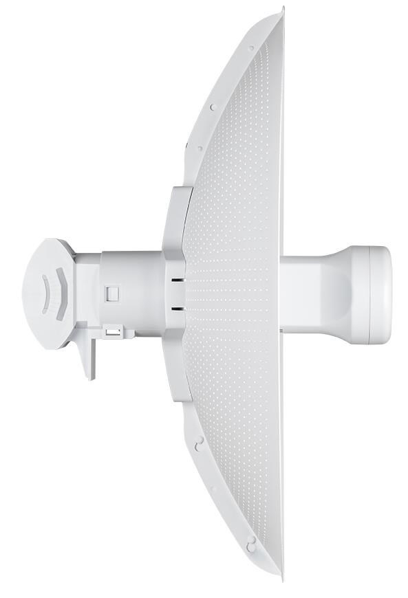Vonkajší Wi-Fi prístupový bod D-Link DAP-3712 s parabolickou 23 dBi smerovou anténou poskytuje spoľahlivé riešenie pre vonkajšie bezdrôtové siete. Pracuje v pásme 5GHz s maximálnou rýchlosťou až 867 Mb/s (802.11ac 2x2). Je možné ho prevádzkovať v režimoch prístupový bod (Access Point, AP), bezdrôtový klient alebo v režimoch WDS AP a WDS klient na vytvorenie bridge spojov v topológiách bod-bod (Point-to-Point, PtP) alebo bod-multibod (Point-to-Multipoint, PtMP) na vzdialenosť až 20 km. Je navrhnutý predovšetkým pre poskytovateľov bezdrôtového internetu (Wireless ISP), ktorým umožňuje rýchlu a nákladovo efektívnu distribúciu internetu na pripojenie zákazníkov. Špecifikácie: • Wi-Fi 5 single-band 5 GHz, 802.11a/n/ac 2x2, max. 867 Mb/s • 1x 100/1000 Mb/s RJ-45 port • LED indikácia: sila signálu • Parabolická smerová anténa 23 dBi, vyžarovací uhol 10° H, 10° V • Prevádzkové režimy: access point, wireless client (station), WDS AP, WDS klient • Bridge topológia bod-bod alebo bod-multibod, dosah až 20 km • Maximálny vysielací výkon 27 dBm, možnosť nastavenia vysielacieho výkonu • Prevádzkové pásma: 5180~5320 MHz, 5745~5825 MHz, šírka pásma 20/40/80 MHz • Podpora TDMA technológie • Wi-Fi šifrovanie 802.11i 128-bit AES Personal / Enterprise • Gestión: webové rozhranie • 1x SSID, možnosť skryť vysielanie SSID • SSID VLAN, Management VLAN • Funkcie: izolácia klientov, obmedzenie rýchlosti, obmedzenie max. počtu klientov • QoS: Traffic Shaping, QoS Priority, WMM, IP Filter, MAC filter • Vyhotovenie ABS plast, stupeň krytia IP66 • Prevádzkové teploty od -40°C do +65°C • Napájanie: aktívne PoE+ podľa 802.3at, 48V PoE injektor súčasťou dodávky • Max. spotreba 15W • 8 kV ESD prepäťová ochrana • Hmotnosť: 900 g • Rozmery: 372 x 372 x 241 mm