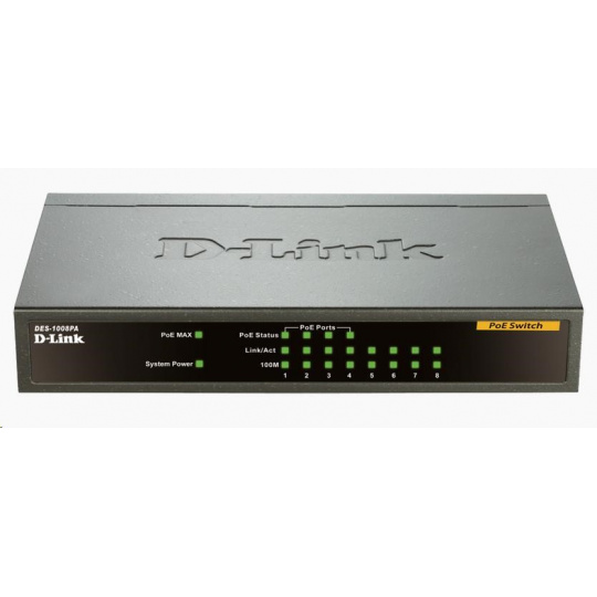D-Link DES-1008PA 8-portový 10/100 stolový prepínač so 4 portami PoE