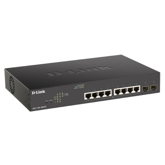 D-Link DGS-1100-10MPV2 10portový gigabitový inteligentný riadený prepínač PoE+, 8x gigabit PoE, 2x SFP, rozpočet PoE 130 W