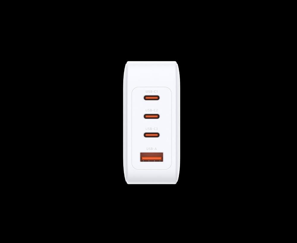 Technologie GaN: Umožňuje výkonné, efektivní a bezpečné nabíjení s komplexní bezpečnostní ochranou 140W rychlé nabíjení: Rychlé nabíjení vašeho notebooku, tabletu, mobilního telefonu a dalších s výstupem až PD 3.1/QC 4.0 140W Čtyři porty USB-C/USB-A: Obsahuje USB-C x 3 a USB-A x 1 pro nabíjení 4 zařízení současně Bezpečnostní ochrana: Napájení je deaktivováno při chybách způsobených nadproudem, přepětím, přebitím, přehřátím nebo zkratem.