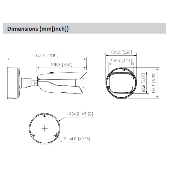* Nižšie uvedené parametre a technické listy je možné použiť iba pre sériu 5842-Z-S3. 1/1,8" obrazový snímač CMOS s rozlíšením 8 MP, nízkou clonou a vysokým rozlíšením obrazu. Výstup max. 8 MP (3840 × 2160) pri 25/30 snímkach za sekundu. Vstavaná infračervená LED dióda a maximálna svetelná vzdialenosť je 60 m. ROI, SVC, SMART H.264+/H.265+, AI H.264/H.265, kódovanie po filtri, flexibilné kódovanie, použiteľné pre rôzne šírky pásma a úložné prostredia. Režim otáčania, WDR, 3D NR, HLC, BLC, digitálny vodoznak, použiteľný pre rôzne monitorovacie scény. S algoritmom hlbokého učenia podporuje: metadáta videa, inteligentnú detekciu zvuku, IVS, detekciu tváre, inteligentnú detekciu objektov a počítanie ľudí atď. Alarm: 3 vstupy, 2 výstupy; Zvuk: 1 vstup, 1 výstup; RS-485; analógový výstup; výstupný výkon; podporuje max. 512G Micro SD kartu, vstavaný duálny mikrofón MIC. Napájanie 24 VAC/12 VDC/PoE; ePoE. Krytie IP67, IK10. SMD 3.0..
