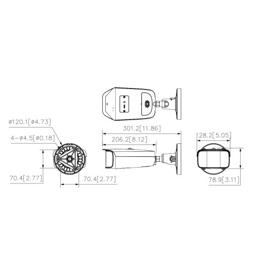 Výstupy max. 8 MP (4096 × 1800) @ 25 fps. Kodek H.265, vysoká miera kompresie, veľmi nízka bitová rýchlosť. Zabudované teplé svetlo a maximálna svetelná vzdialenosť je 40 m. ROI, SMART H.264+/H.265+, AI H.264/H.265, flexibilné kódovanie, použiteľné pre rôzne šírky pásma a úložné prostredia. WDR, 3D NR, HLC, BLC, digitálny vodoznak, použiteľný pre rôzne monitorovacie scény. Detekcia abnormalít: Detekcia pohybu, manipulácia s videom, zmena scény, detekcia zvuku, žiadna SD karta, plná SD karta, chyba SD karty, odpojenie siete, konflikt IP, nelegálny prístup a detekcia napätia. Alarm: 1 vstup, 1 výstup; Zvuk: 1 vstup, 1 výstup; podporuje max. 512G Micro SD kartu, vstavaný mikrofón a reproduktor, podporu obojsmerného hovoru. Napájanie 12 VDC/PoE. Krytie IP67. Inteligentné monitorovanie: Vniknutie, vypínač, tepelná mapa a počítanie ľudí. EPTZ: Zväčšenie a sledovanie inteligentných poplachových cieľov. SMD 4.0. Široký uhol záberu 180°..