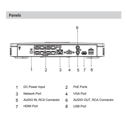 - PoE napájanie kamier: 8 x PoE (802.3af - max.72 W celkom) s technológiou Plug & Play, max. spotreba z jedného portu je 25.5 W