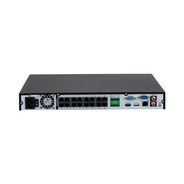 16-kanálový sieťový videorekordér NVR. Povolené sú kombinácie rôznych rozlíšení, snímok a bitových rýchlostí až do 160 Mb/s (bez AI). Podporuje napájanie 802.3at/af PoE s celkovým napájaním 130 W (max. 25.5 W/port).