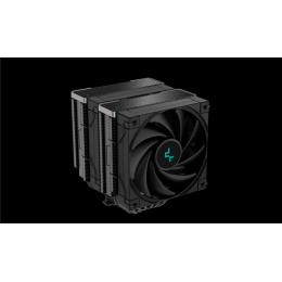 DeepCool AK620 ZERO DARK je celá čierna edícia dominantného vysoko výkonného chladiča CPU AK620. Rovnaké materiály prémiovej kvality so šiestimi pokročilými medenými tepelnými trubicami, hustý chladič s dvojitou vežou a dve tiché ventilátory FDB tvoria výkonnú víťaznú kombináciu pre vysoko výkonné chladenie v dizajne ZERO DARK raven.