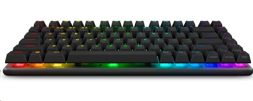 | detachable USB paracord cable, wireless dongle extender, Alienware Linear Mechanical Switches, PBT double-shot keycaps, on-board memory, full anti-ghosting, N-key rollover, fully programmable keys, Windows key disable, 16.8 million RGB AlienFX lighting |