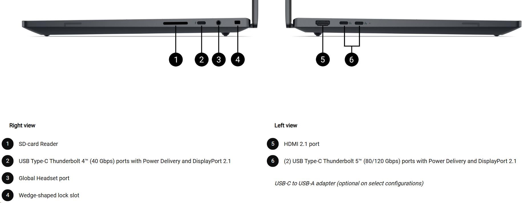 USB-C to USB-A adapter (optional on select configurations) |