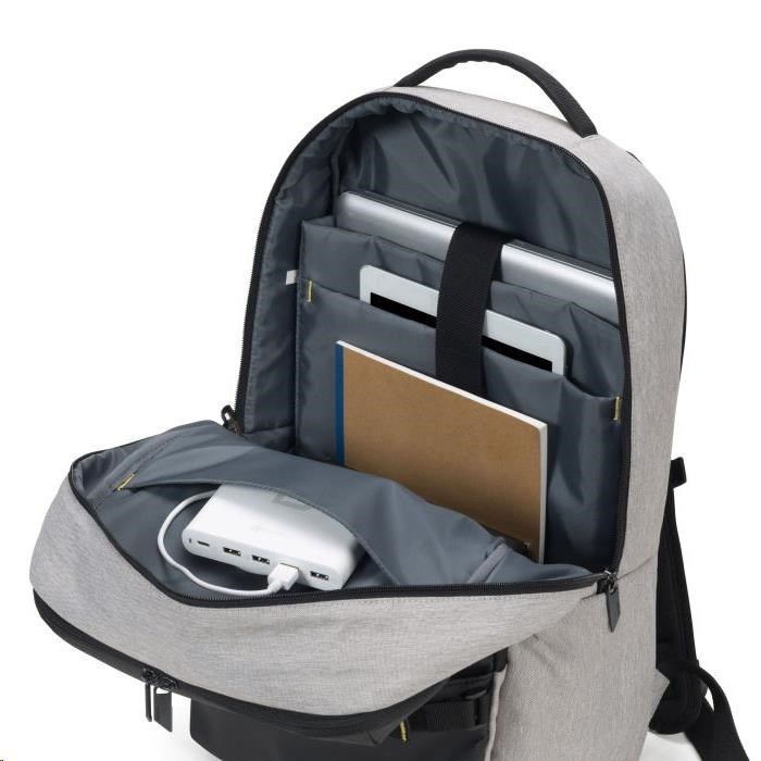 Od hodín jogy až po kanceláriu. MOVE je určený na každodenné používanie. Pohodlná vďaka ergonomickému polstrovaniu chrbta a polstrovaným ramenným popruhom s nastaviteľným hrudným pásom. S batohom môžete dokonale manévrovať vďaka dvom rukovätiam na prenášanie. Tkanina je vyrobená z vodoodpudivých materiálov, ale v prípade búrky batoh obsahuje aj pláštenku s reflexným logom DICOTA. Primárny úložný priestor obsahuje priehradku na notebook s polstrovaním z peny s vysokou hustotou (HDF), polstrované vrecko na tablet do 10.5 palcov, priehradkou na dokumenty a elastickým sieťovaným vreckom na fľašu s nápojom. Druhá hlavná priehradka obsahuje priehradky na slúchadlá a priečinky.