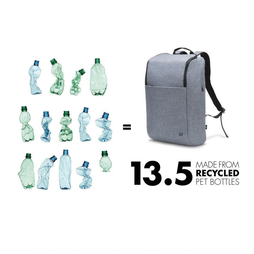 Batoh na notebook Eco MOTION 13 - 15.6" Blue Denim Štýlový batoh na notebook s ochranným polstrovaním a množstvom úložného priestoru Dnešné činy formujú zajtrajší svet. Preto sa v spoločnosti DICOTA venujeme vývoju riešení šetrných k životnému prostrediu, a preto všetky predmety v našich kolekciách ECO vyrábame z udržateľného recyklovaného PET. Opakovane používame až 31 PET fliaš, takže dostanete ekologický výrobok s doživotnou zárukou. Aj naše výrobky z PET majú kvalitu, vzhľad a povrchovú úpravu, ktoré poznáte a máte radi. Špecifikácie Art.no.: D31875-RPET EAN: 7640186418201 Hmotnosť: 0.75 kg Materiál: 600Dx400D RPET Polyester Záruka: doživotná / 30 rokov Rozmery: 325 x 475 x 150 mm Max. Rozmery zariadenia: 385 x 30 x 265 mm Charakteristika - Vyrobené z 13.5 recyklovaných PET fliaš - 23 litrov úložného priestoru - Polstrovaná priehradka na notebook s penou vysokej hustoty (HDF) - Vrecko na tablet do 12.9" - Priestranná hlavná časť s priehradkami na dokumenty a príslušenstvo - Predné vrecko s úložným priestorom na mobilné príslušenstvo - Sieťované vrecko na fľašu na vodu alebo dáždnik vo vnútri - Rýchlo prístupný zips na boku..