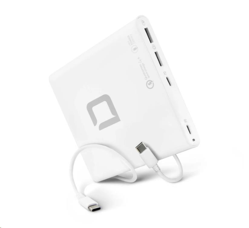 Príslušenstvo je možné používať vo viac ako 180 krajinách a je vybavené dvoma USB-C výstupmi s technológiou Power Delivery 3.0 a dvoma portmi USB-A s technológiou Qualcomm Quick Charge 4.0+. Maximálny výkon nabíjacej stanice je 120 W. Výstupné napätie (5 - 20 V) a nabíjací prúd (až 5 A) sa automaticky prispôsobujú pripojeným zariadeniam. Inteligentný riadiaci systém šetrí batériu a zároveň poskytuje spoľahlivú ochranu proti nadprúdu, prepätiu, zkratu a prehriatiu. Elegantný dizajn, kompaktný tvar a hmotnosť len 240 gramov - ideálny spoločník pre rýchle a efektívne získavanie energie doma, v kancelárii alebo na cestách. Súčasťou je plastová podpera, ktorá zabraňuje prehriatiu.
