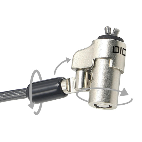 Notebooky sú stále tenšie a zároveň všestrannejšie. Ľahký a mimoriadne elegantný ultra tenký bezpečnostný káblový zámok spoľahlivo ochráni vaše zariadenie, aniž by mu pridával zbytočný objem. Takisto projektory, monitory a tlačiarne je možné účinne zabezpečiť pomocou zámkových systémov DICOTA. V súčasnosti výrobcovia zariadení používajú tri rôzne formáty zámkových slotov. Zámok Security Cable Wedge Lock Ultra Slim je vhodný pre všetky modely so slotom 3,2 x 4,5 mm a je kompatibilný s tenkým bezpečnostným slotom Noble Wedge*. Gumený nárazník zabraňuje poškrabaniu zariadenia a zároveň zabezpečuje bezproblémové uchytenie. Vďaka otočnej a výkyvnej a zatváracej hlave s možnosťou otáčania valca o 360° si užijete maximálnu flexibilitu pri navrhovaní pracoviska. Viacžilové oceľové lanko s plášťom je dlhé 2 m a má priemer 4,4 mm. Funkčný pásik na suchý zips umožňuje zrolovať kábel pre kompaktné skladovanie a prepravu. Súčasťou dodávky sú dva kľúče. Tento zámok je v samostatnej verzii a nie je možné ho integrovať do väčšieho uzamykacieho systému. Nobel Wedge™ je ochranná známka tretej strany bez väzby na spoločnosť DICOTA SCHWEIZ AG.