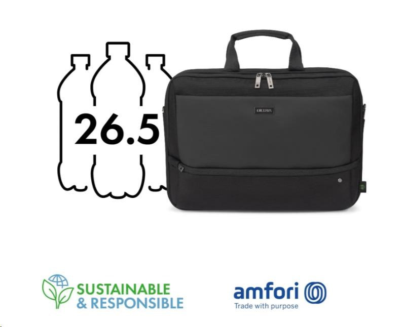 Taška Top Traveller FIVE je navrhnutá tak, aby chránila vaše zariadenie a zároveň vám umožňovala jednoduchý prístup k nevyhnutnostiam. Uzamykateľná priehradka na notebook s ochranou DCT Notebook Protection a vypchávkami rohov z HDF peny a EVA zabezpečuje maximálnu bezpečnosť, zatiaľ čo integrovaná kapsa poskytuje bezpečné uloženie tabletov do veľkosti 12,9". Hlavná priehradka ponúka dostatok priestoru pre dokumenty, priečinky alebo mobilné vybavenie a predná časť obsahuje usporiadané kapsy na príslušenstvo. Malá predná kapsa poskytuje ďalší úložný priestor pre káble a menšie predmety. Vyrobené z 26,5" recyklovaných PET fliaš.