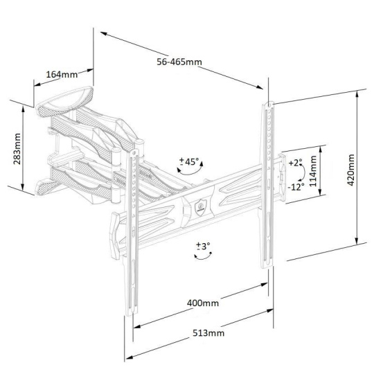 Dizajnový držiak na TV Ergosolid CEROS-R3 Držiak na TV 32-60", otočný +/-75°, sklápací +2°/-12°, nastaviteľná dĺžka 56-465mm, VESA 200x100 až 400x400, poctivá dizajnová konštrukcia, nosnosť 30kg Polohovateľný držiak na televízory, ktorý sa vyznačuje pevným konštrukčným prevedením a jednoduchým nastavením obrazovky do požadovanej polohy. Držiak umožňuje zavesenie TV buď na stenu, pilier, stĺpik, alebo do rohu miestnosti či pripraveného výklenku. Svojimi možnosťami je ideálny na zavesenie obrazoviek s veľkosťou 32" až 60" (80cm až 152cm). Držiak podporuje VESA štandardy 200x100 až 400x400 a je možné ho zaťažiť obrazovkou s hmotnosťou až 30kg. V prípade nepresného montážneho alebo nerovného steny držiak umožňuje upraviť rovinu obrazovky. Farebné prevedenie čierne. Záruka 3 roky. Držiak je dodávaný vrátane montážneho materiálu a dizajnových krytiek na ramena a nástenný uchyt, ktoré umožňujú skryté vedenie káblov. Držiak na televízory s dizajnovou konštrukciou, otočný, sklápací, dĺžkovo nastaviteľný. Držiak je vhodný na LCD, LED, OLED, Smart, zakrivené obrazovky. Nosnosť 30kg. Ergosolid CEROS-R3 Technické údaje: nosnosť 30kg na televízory a monitory s uhlopriečkou 32" až 60" držiak podporuje VESA štandardy pre zavesenie obrazovky 200x100 až 400x400 otáčanie do strán +/- 75° naklon nahor až +2°, naklon nadol až -12° korekcia roviny obrazovky +/- 3° nastavenie vzdialenosti od steny 56mm až 465mm dizajnové krytky na ramená a nástenný uchyt, ktoré umožňujú skryté vedenie káblov poctivá celokovová konštrukcia vysoká pevnosť, pevným prevedením výborný pomer cena / užitná hodnota montážny materiál súčasťou balenia farebné prevedenie čierne záruka 3 roky Držiak na televízory Ergosolid CEROS-R3 podporuje VESA štandardy: VESA 200x100 VESA 200x200 VESA 300x100 VESA 300x200 a 200x300 VESA 300x300 VESA 400x200 a 200x400 VESA 400x300 a 300x400 VESA 400x400 Dizajnový nástenný držiak na TV 32-60 palcov Ergosolid CEROS-R3 zabezpečí stabilné a bezpečné zavesenie televízie na stenu, pilier, stĺpik alebo do rohu miestnosti či výklenku. Na držiak CEROS-R3 je možné zavesiť všetky typy, značky a veľkosti televízorov, ktoré majú maximálnu hmotnosť 30kg a podporujú niektorý z vyššie uvedených VESA štandardov. Uhlopriečka obrazovky pri splnení týchto podmienok nezáleží.