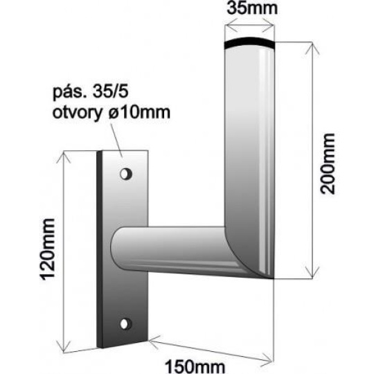 Držák antény na zeď, galvanický zinek, délka 15cm, výška 20cm