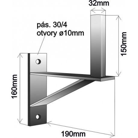 Držák antény na zeď se vzpěrou, galvanický zinek, délka 19cm