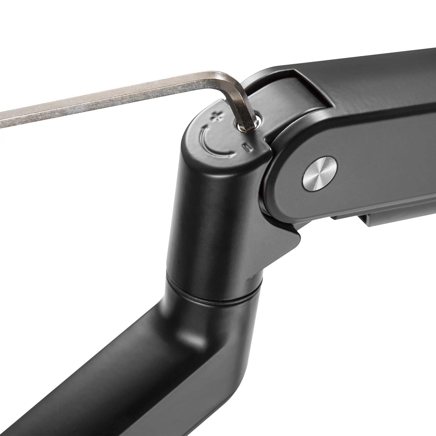Stolný držiak na monitor alebo televíziu s uhlopriečkou 15-35" v úplne precíznom spracovaní, špičkovej kvalite a profesionálnom poňatí v každom detaile. Držiak vyniká vysokou nosnosťou plynového pruženia s nastavením od 1kg až do 15kg, je preto vhodný ako pre ľahké a malé monitory, tak aj pre veľké monitory alebo All in One monitory. Nastaviteľná výška od stolovej dosky od 178mm až do 418mm, výškový rozsah 240mm. Otáčanie do strán bez obmedzenia, naklápanie v širokom rozsahu až +/- 45°, nastavenie vzdialenosti od stolového úchytu max. 443mm, funkcia pivot, systém vedenia káblov, 2 typy stolových úchytov (na okraj alebo do priestoru), inštalačný materiál. Držiak je najvyššej kvality a splní požiadavky aj náročných používateľov. Farebné prevedenie čierne, záruka 3 roky.