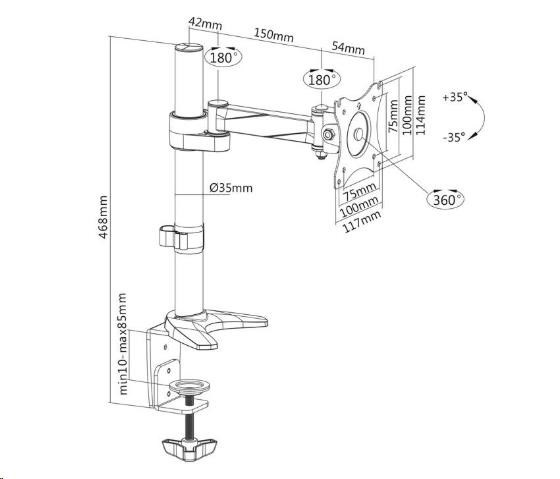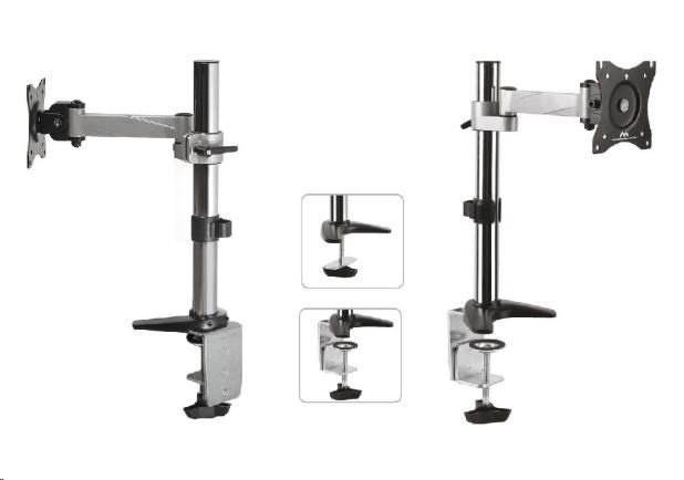 Držiak monitora na stôl Fiber Mounts MC717 Stolný držiak na monitor 15÷30", otočný, sklopný, výškové nastavenie, funkcia pivot Veľmi pekný, kvalitný a hlavne cenovo dostupný stolový držiak na zavesenie monitorov s uhlopriečkou 15÷30 palcov. Plná nastaviteľnosť polohy obrazovky - otáčanie do strán, náklon, výšková regulácia, horizontálne alebo vertikálne otočenie obrazovky, korekcia roviny. Stolný držiak MC717 podporuje VESA štandard 75x75 a 100x100, odporúčané maximálne zaťaženie je 8kg. Súčasťou balenia je montážny materiál a 2 typy uchytenia na stolovú dosku - na kraj stolu alebo skrz stolovú dosku kdekoľvek do priestoru. Držiak je výbornej kvality a naozaj pekného dizajnu. Držiak na monitor do kancelárie, domácnosti, firmy alebo do škôl -Fiber Mounts MC717 - otočný, sklopný, výškovo nastaviteľný, funkcia pivot, TOP kvalita, dizajn, vynikajúca cena za stolový držiak Technické údaje: nosnosť 8kg podpora VESA štandardu 75x75 a 100x100 odporúčame na monitor s uhlopriečkou 15" až 30" otáčanie do strán +180° / -180° náklon +35° / -35° horizontálne alebo vertikálne otočenie obrazovky monitora - funkcia pivot korekcia roviny maximálne oddialenie monitora od nosníka 246mm 2 typy uchytenia na stôl - na kraj stola / skrz stôl kdekoľvek do priestoru minimálna sila stolovej dosky 10mm maximálna sila stolovej dosky 85mm priemer nosníka 35mm výška nosníka od stolovej dosky 400mm nastaviteľná výška ramena vynikajúca kvalita snadné nastavenie polohy obrazovky monitora materiál hliník farba strieborná + chróm záruka 3 roky