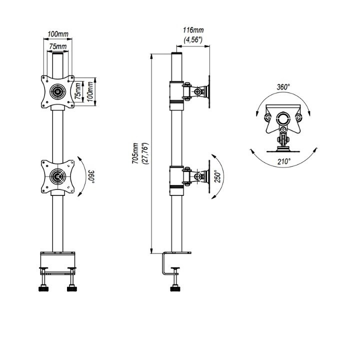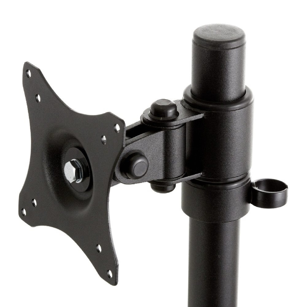 Profesionálny stolný držiak na 2 monitory EDBAK SV08 Profesionálny stolný držiak na zavedenie 2 monitorov 15-30" vertikálne, otočný, sklopný, výškovo nastaviteľný, farba čierna, VESA 75x75 a 100x100, nosnosť 20kg Profesionálny stolný držiak na nezávislé zavedenie monitorov alebo menších televízorov pod seba. Držiak umožňuje nezávislé nastavenie každého monitora - nastavenie výšky, náklonu a otočenia do strán. Dodávame vrátane 2 typov upevnenia na stolovú dosku (viď. obr. nižšie), farebné prevedenie čierne. Držiak je vyrobený z kvalitnej silnostennej ocele a neobsahuje žiadne plastové nosné prvky. Vďaka profesionálnej konštrukcii a výbornej kvalite je vhodný do akéhokoľvek prevádzky, kancelárie alebo pracovne. Stolný držiak do kancelárie na zavedenie 2 monitorov pod sebou - EDBAK SV08 Technické údaje: celkové maximálne zaťaženie 20kg maximálna hmotnosť každej obrazovky 10kg podpora VESA štandardu 75x75 a 100x100 odporúčame na monitory a obrazovky s uhlopriečkou 15" až 30" nezávislé výškové nastavenie každej obrazovky nezávislé otočenie do strán každej obrazovky nezávislé nastavenie sklonu každej obrazovky robustná oceľová konštrukcia bez nosných plastových častí funkcia pivot - možnosť otáčania obrazovky na výšku vhodný do akejkoľvek prevádzky dodávame vrátane 2 typov stolového upevnenia (viď. obr. nižšie) certifikát TUV GS farba čierna záruka 10 rokov Stolný držiak na 2 monitory alebo TV Edbak SV08 Držiaky na 2 monitory Edbak SV08 podporujú VESA štandardy: VESA 75x75 VESA 100x100