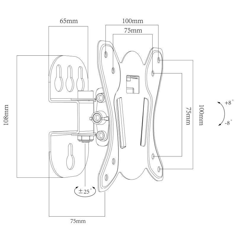 Držiak monitora TV Ergosolid FN502 Kvalitný nástenný držiak na TV monitory 10-30", otočný +/- 25°, sklopný +/- 8°, podpora VESA 75x75 a 100x100, vzdialenosť od steny 75mm, nosnosť 25kg Kvalitné riešenie, ako zaviesť menšiu televíziu alebo monitor s uhlopriečkou 10-30" na stenu a mať možnosť natáčania do strán a nakláňania. Nástenný držiak FN502 Vám umožní kedykoľvek televíziu otočiť do strany až o 25° a nakloniť až o 8°. Podporuje VESA štandardy 75x75 a 100x100, vzdialenosť TV od steny je 75mm a zaviesť môžete obrazovky s hmotnosťou až 25kg. Vynikajúca kvalita konštrukcie zabezpečí úplne bezpečné a spoľahlivé zavešenie. Jednoduchá montáž, montážny materiál a záruka 10 rokov. Otočný a sklopný držiak TV monitoru Ergosolid FN502 Technické údaje: nosnosť 25kg podpora VESA štandardu 75x75 a 100x100 na monitory a televízory 10" až 30" (podľa VESA aj väčšie) otáčanie do strán +/- 25° náklon +/- 8° vzdialenosť od steny 75mm veľmi pevná a bezpečná konštrukcia materiál oceľ farebné prevedenie čierne balenie obsahuje inštalačný materiál záruka 10 rokov Otočný a sklopný držiak na TV monitor bez ramena, vzdialenosť 75mm, nosnosť 25kg - Ergosolid FN502 Držiak Ergosolid FN502 podporuje VESA štandardy: VESA 75x75 VESA 100x100 Na držiak Ergosolid FN502 je možné zaviesť všetky typy, značky a veľkosti TV a monitorov, ktorých hmotnosť je do 25kg a ktoré podporujú VESA štandard 75x75 alebo 100x100. Uhlopriečka nie je podstatná - uvádzané uhlopriečky v popise sú iba orientačné. VESA štandard je celosvetovo uznávané označenie pre štandard montáže televízorov, monitorov a obrazoviek. Označuje rozteč 4 montážnych otvorov na zadnej strane zariadenia pre uchytenie na držiak.