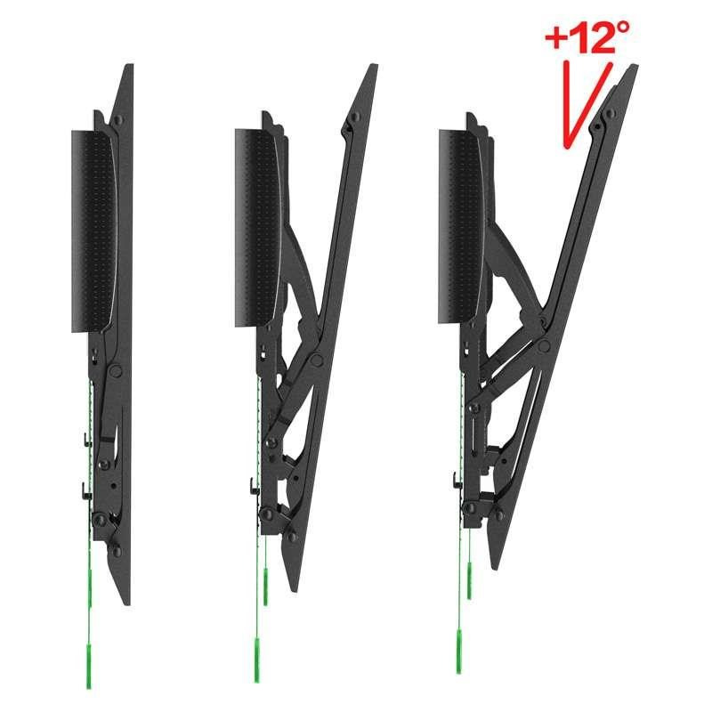 Držiak na TV sklopný NB C3T Držiak na TV 43-80" s naklápaním 0°-12°, vzdialenosť od steny 35mm, systém Click-Connect, prémiová kvalita, nosnosť 36kg Nástenný držiak prémiovej kvality na televízory aj monitory s uhlopriečkou 43-80". Držiak podporuje VESA 75x75 až 600x400 a bezpečne unesie obrazovky s hmotnosťou až 36,4kg. Vzdialenosť od steny je 35mm. Držiak má špičkový systém click-connect pre jednoduché a bezpečné pripnutie televízie k držiaku bez použitia náradia. Uvoľnenie je možné pomocou táhel. Držiak má oceľovú veľmi pevnu konštrukciu, inštalačná doska s rozmermi 700x110mm poskytuje veľmi dobré rozloženie hmotnosti na stenu. Farebné prevedenie čierne. Záruka 5 rokov. Sklopný držiak na LCD plasma LED OLED 3D aj prehnuté televízory s uhlopriečkou 42-65 palcov. Nosnosť 36kg, VESA štandard, systém Click-Connect, prémiová kvalita - NB C3T Technické údaje: nosnosť 36,4kg podpora VESA štandardov 75x75 až 600x400 odporúčame na TV s uhlopriečkami 43" až 80" vzdialenosť TV od steny 35mm možnosť naklonenia TV smerom nadol 0° až -12° automatické upevnenie TV na držiak vďaka systému click-connect oceľová veľmi pevná konštrukcia balenie obsahuje všetok inštalačný materiál prémiová kvalita farebné prevedenie čierne záruka 5 rokov Naklápanie televízie na sklopnom držiaku TV NB C3T Držiak TV NB C3T podporuje VESA štandardy pre zavesenie TV: VESA 75x75 VESA 100x100 VESA 200x100 a 100x200 VESA 200x200 VESA 300x200 a 200x300 VESA 300x300 VESA 400x200 a 200x400 VESA 400x300 a 300x400 VESA 400x400 VESA 600x200 VESA 600x400 Sklopný držiak NB C3T je vhodný pre zavesenie všetkých typov a značiek televízorov a monitorov, ktoré majú hmotnosť do 36,4kg a podporujú niektorý z uvedených VESA štandardov. Uvádzaná odporúčaná uhlopriečka nie je podstatná, iba informatívna, aké veľké obrazovky by mali hmotnosť aj VESA štandard splniť.