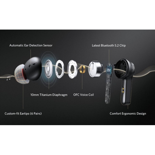 EARFUN bezdrátová sluchátka Air Pro 2 TW300B, černá