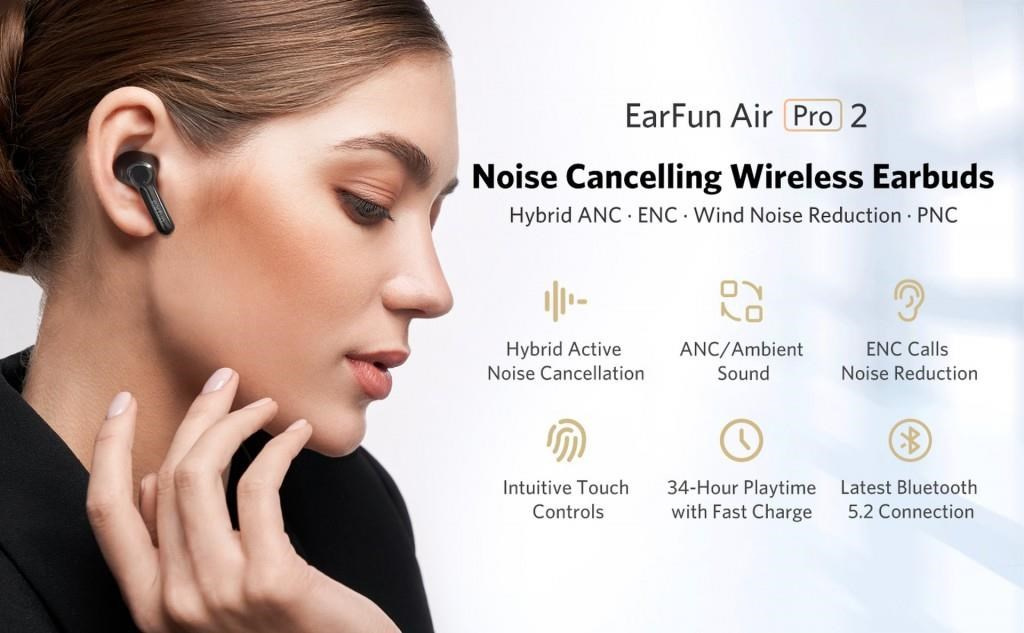 EARFUN bezdrátová sluchátka Air Pro 2 TW300B, černá
