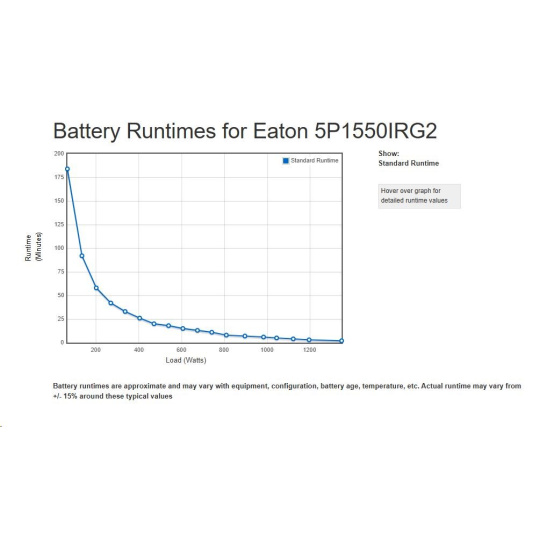 - UPS 5P môže merať energetickú spotrebu v kWh, ktorú je možné sledovať buď na LCD, alebo pomocou softvéru Eaton Intelligent Power® Software Suite.