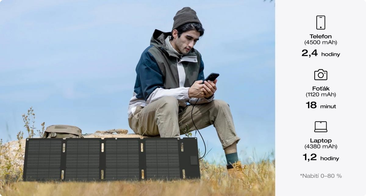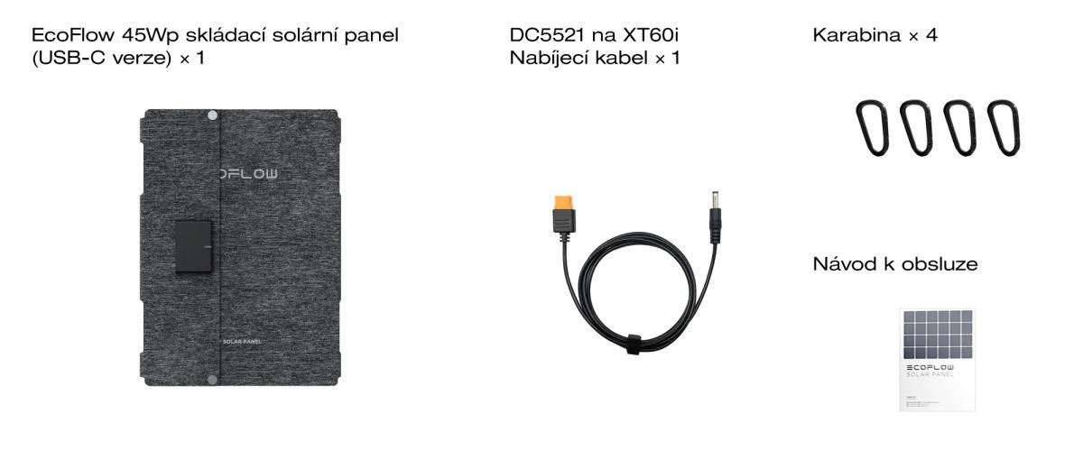 Skladací solárny panel EcoFlow 45 Wp je ideálnym panelom na cesty. Môže dobíjať všetky USB-C mobilné zariadenia, napríklad mobily, laptopy, čelovky a pod. Vďaka druhému výstupu DC5521 ho môžete pripojiť aj k solárnym regulátorom batériových staníc EcoFlow radu RIVER a DELTA.