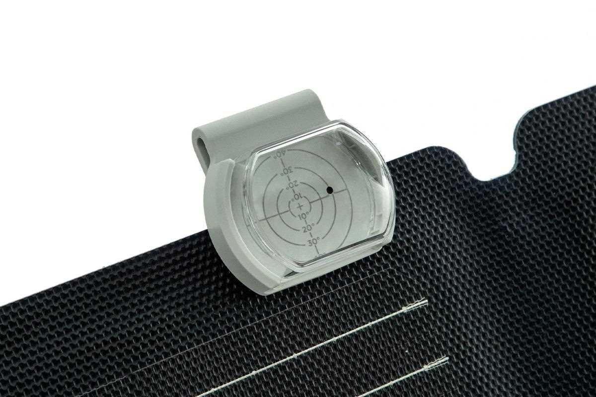 Vďaka priehľadnému krytu môžete slnečný tieň zarovnať do stredu Solar Angle Guide. To zabezpečuje, že ste kolmo na najsilnejšie slnečné lúče.